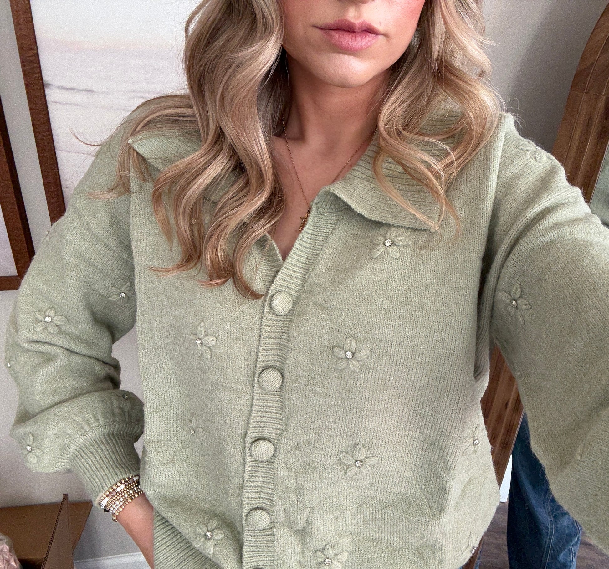 Sage Green Button Up Sweater